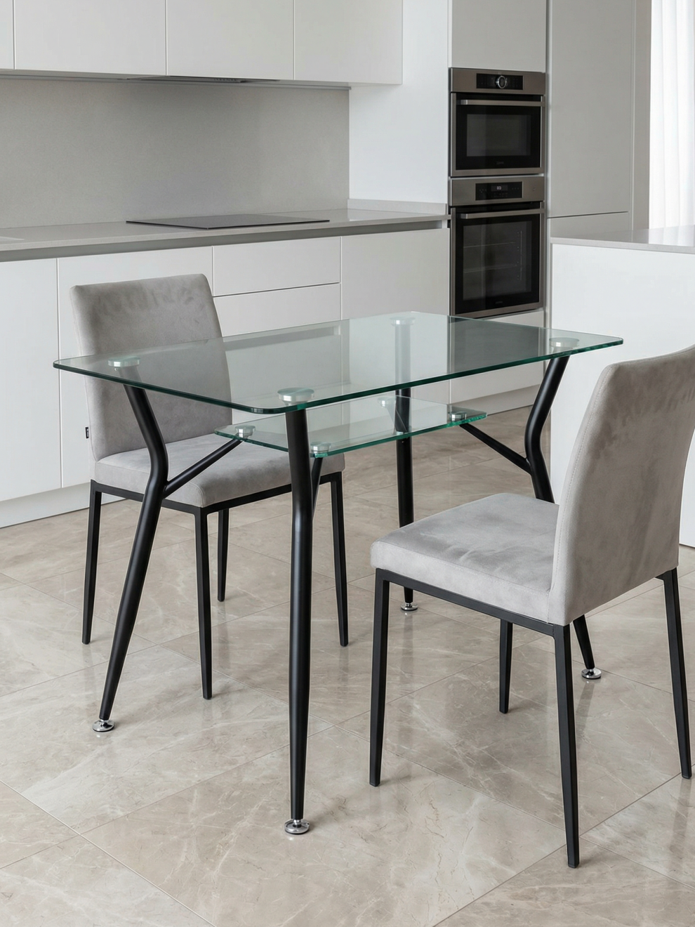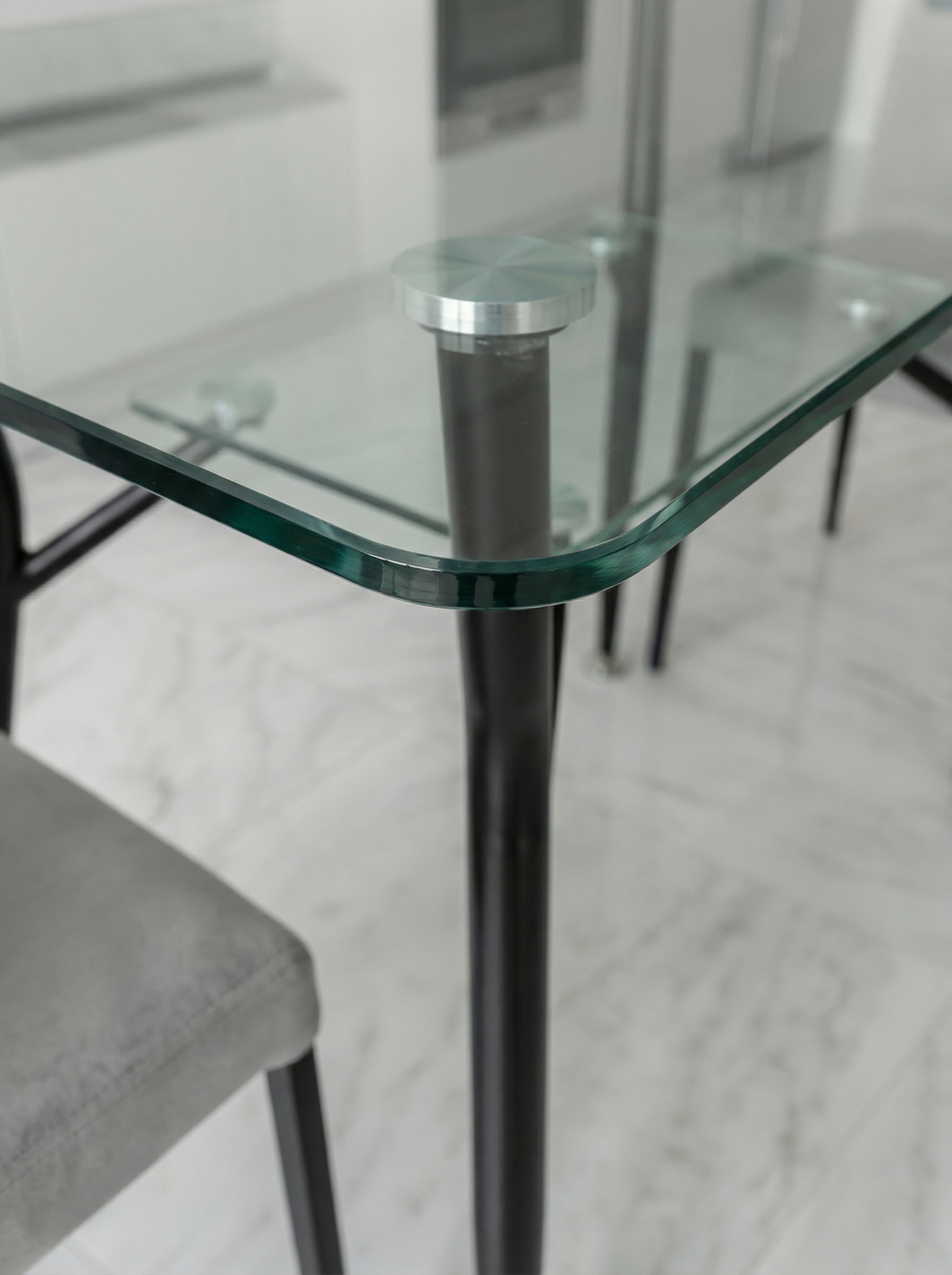 Обеденный стол из стекла Квадро 10 прозрачный/черный