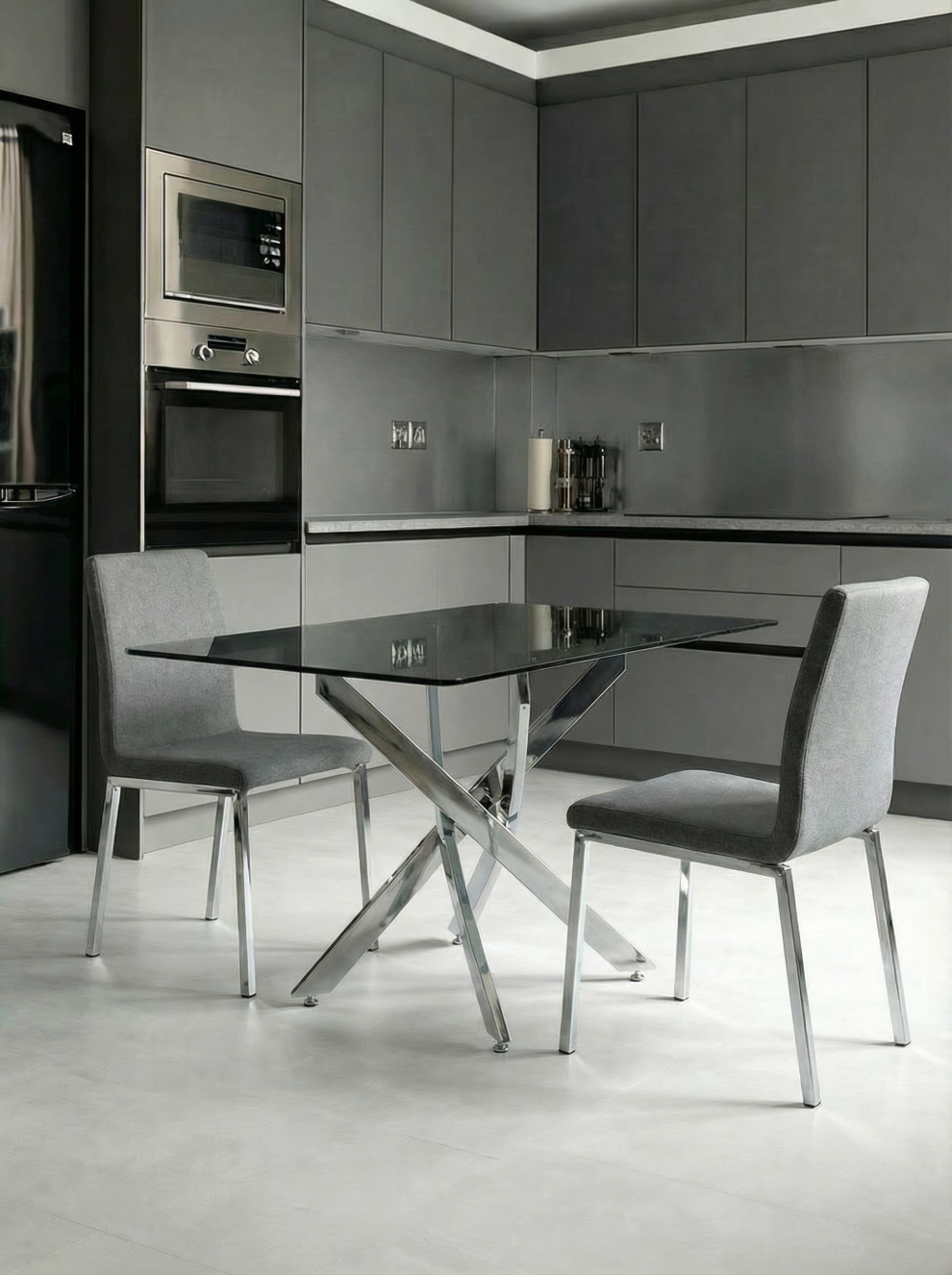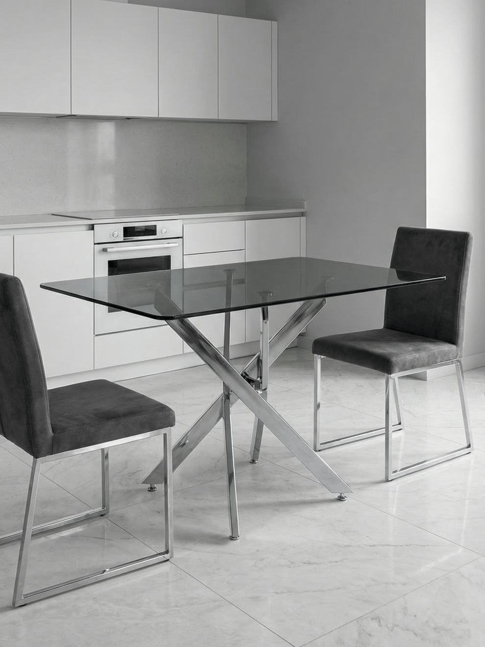 Прямоугольный стеклянный стол Рим 10 серый/хром