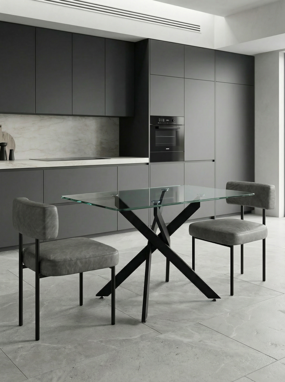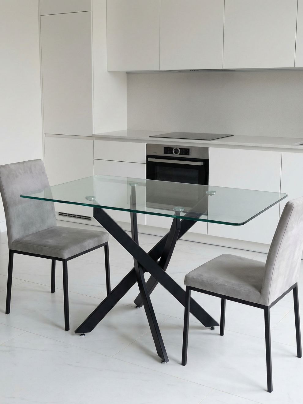 Стеклянный кухонный стол Рим 10 прозрачный/черный