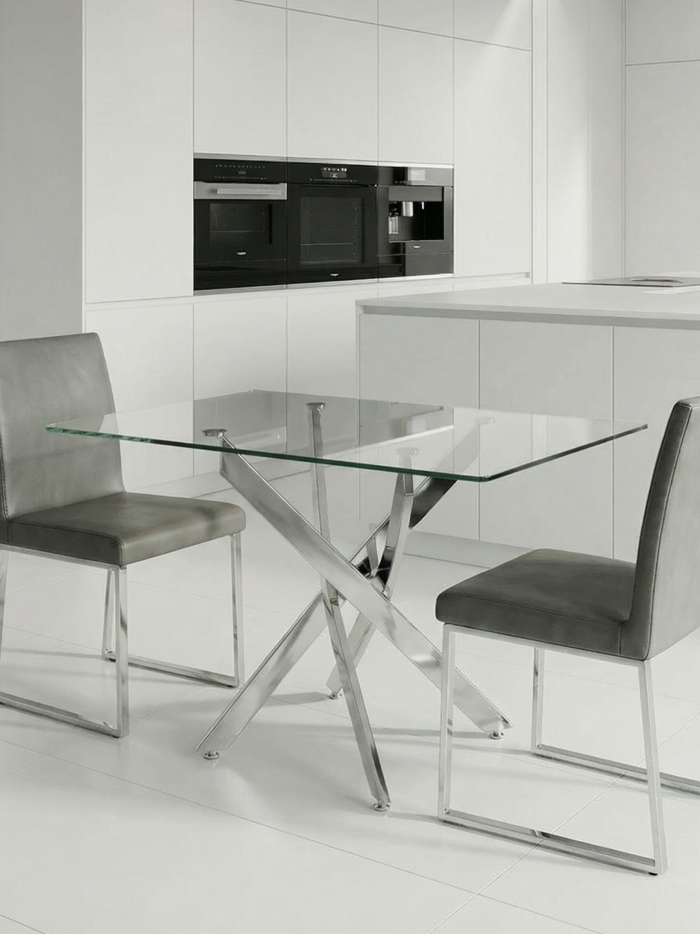Стеклянный кухонный стол Рим 10 прозрачный/хром