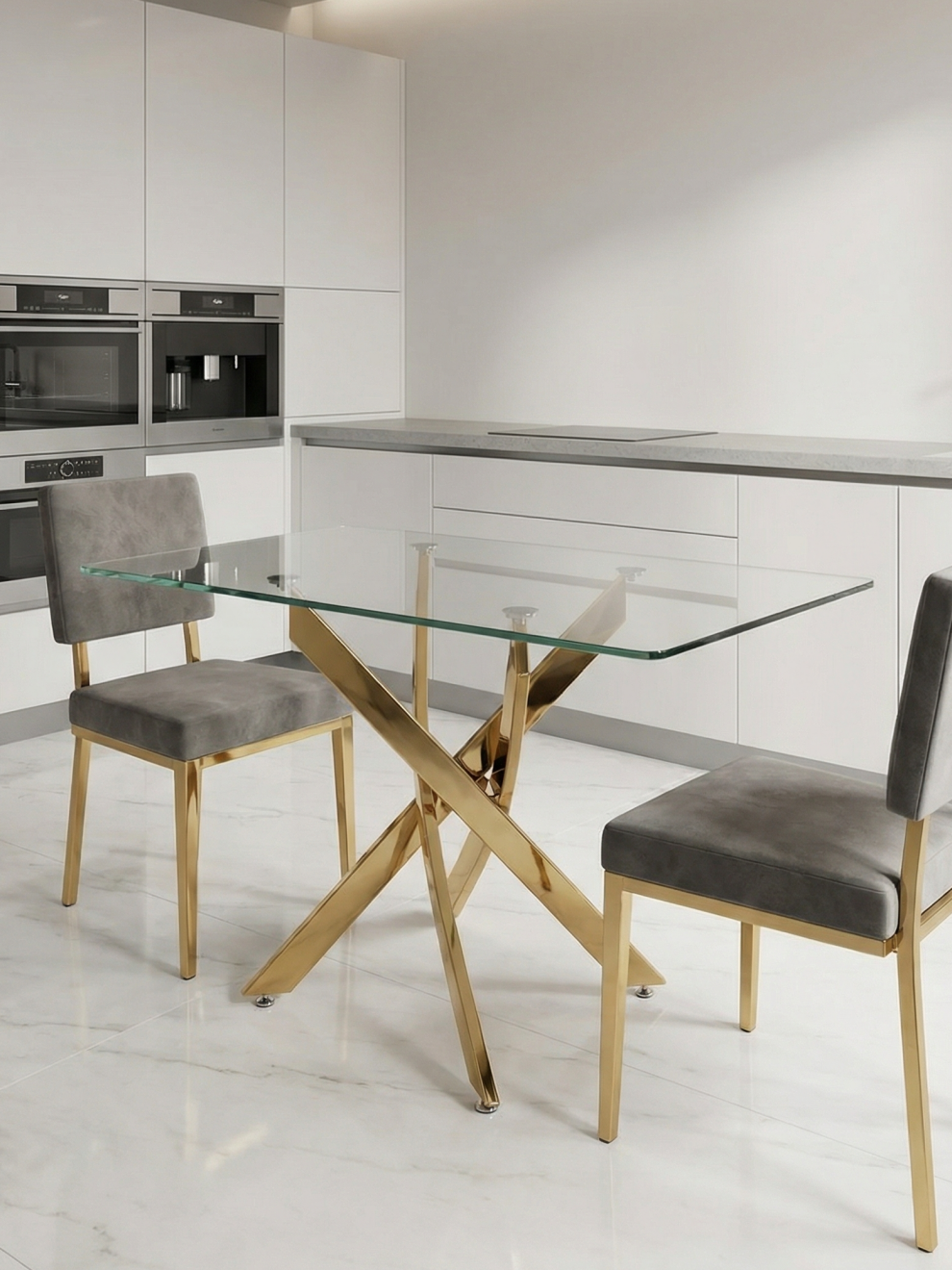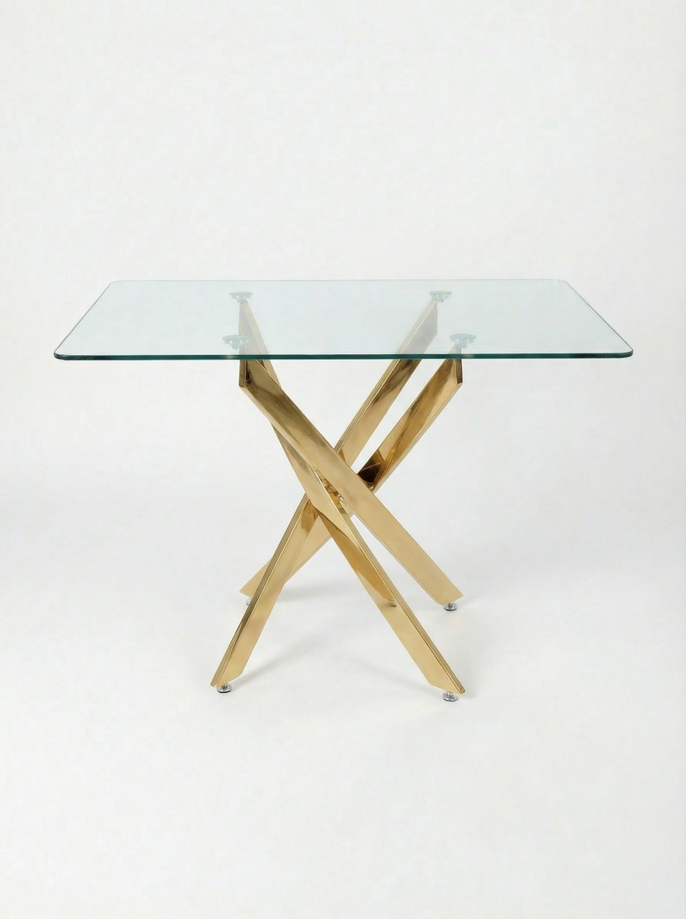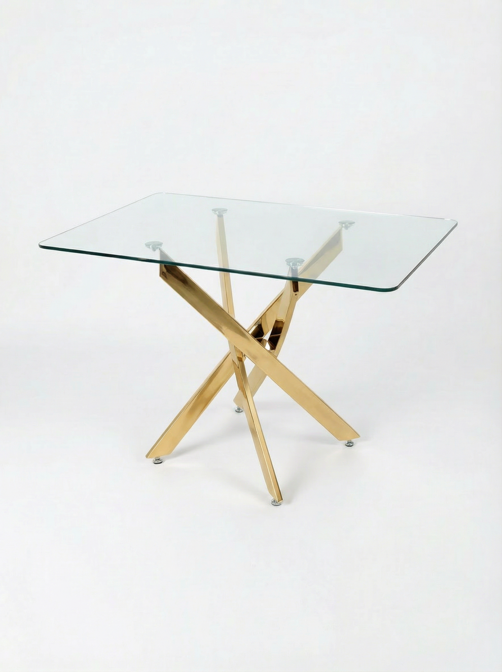 Стеклянный кухонный стол Рим 10 прозрачный/золото