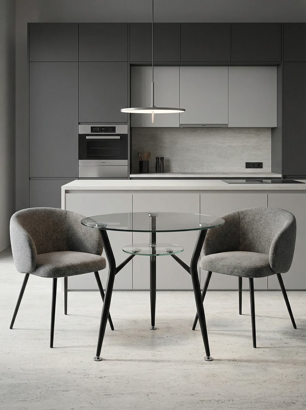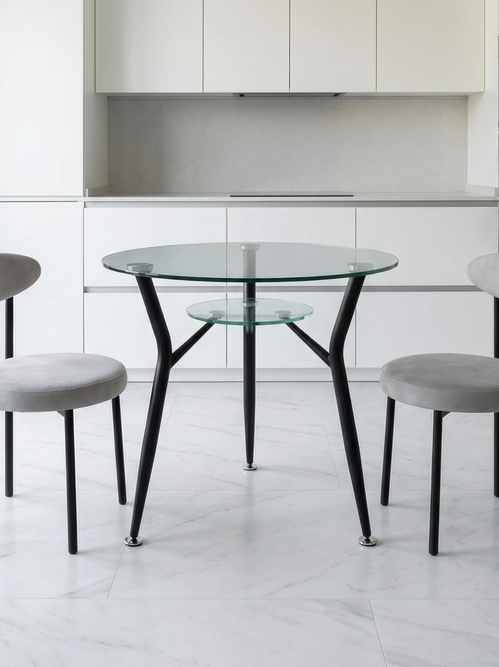 Стеклянный стол для кухни Квадро 18-3 прозрачный/черный