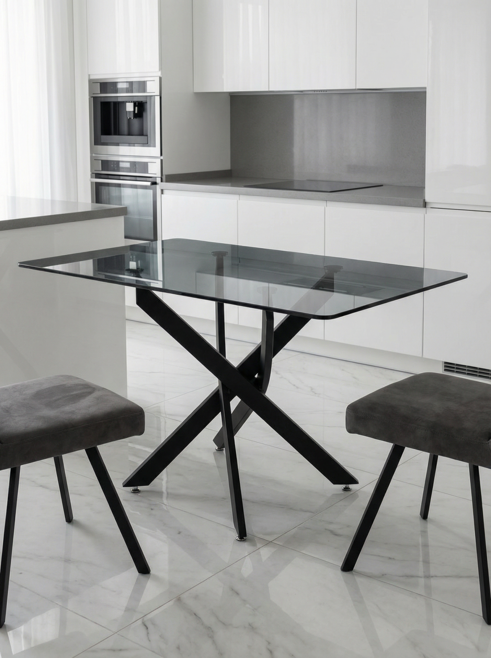 Стол кухонный из стекла Рим 10 серый/черный